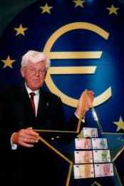 Eerste ECB-President Wim Duisenberg bij de presentatie van de Euro